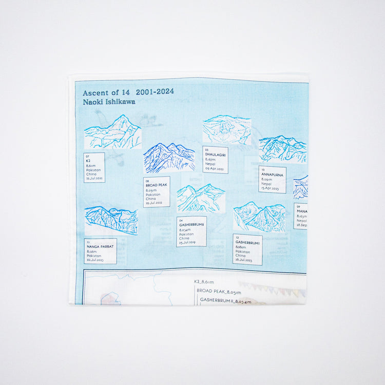 「Ascent of 14 2001-2024 Naoki Ishikawa」ハンカチ